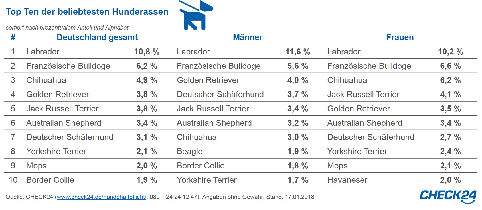 Labrador ist die beliebteste Hunderasse 2017