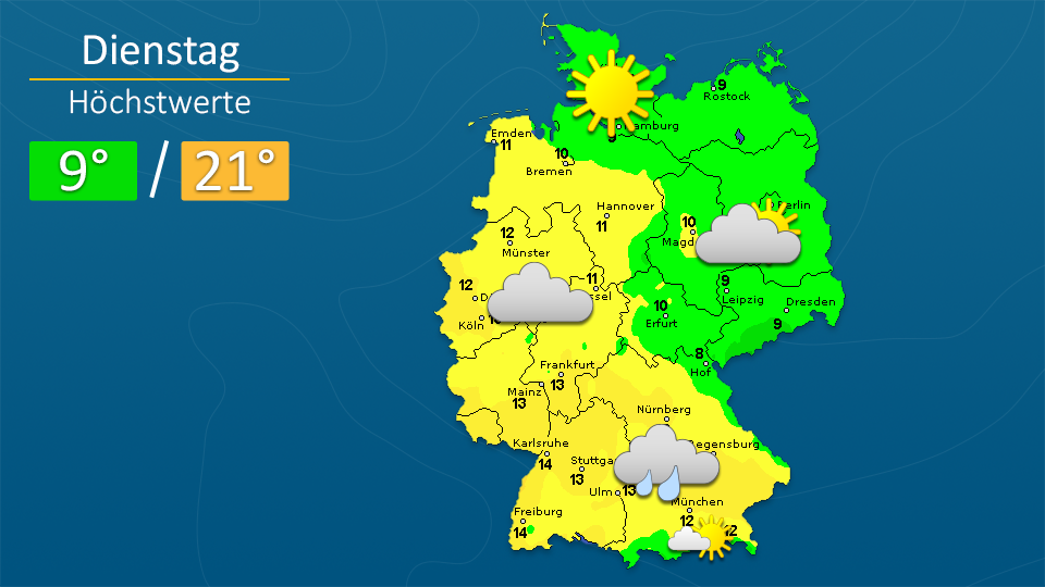 Deutschlandwetter: Dienstag im Süden regnerisch