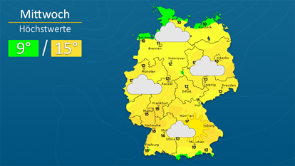 Deutschlandwetter: Mittwoch deutlich mehr Wolken