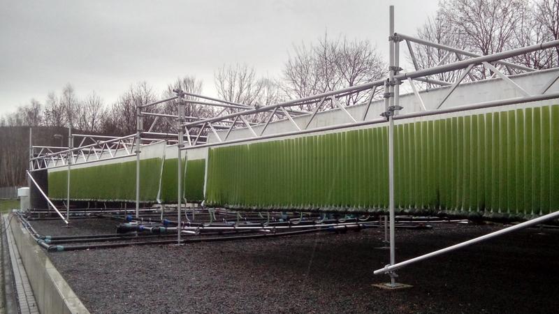 In der Kläranlage Rotenburg haben die Projektpartner Alugestänge installiert, an denen die Beutel mit den Mikroalgen befestigt sind.