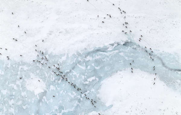 Eine Karibu-Herde auf Wanderschaft. Die Zahl der Tiere nimmt immer mehr ab. Bild Subhankar Banjerjee/Survival