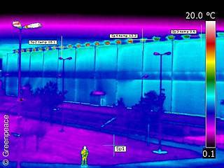 Die Greenpeace-Bilder zeigen: Die 102 Atommüllbehälter stehen im nördlichen Teil der Castorhalle, da die Lüftungsschlitze dort deutlich wärmere Luft abgeben. Bild: Greenpeace