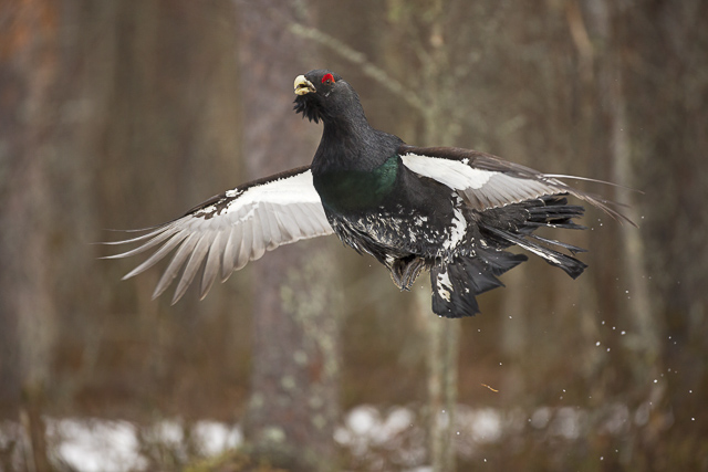 Auerhahn beim Flattersprung während der Bodenbalz (Symbolbild)