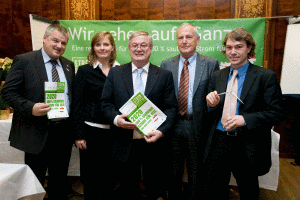 v.l.n.r.: Ing. Franz Kirchmeyr, arge kompost & biogas österreich - DI Martina Prechtl, Kleinwasserkraft Österreich - Dr. Hans Kronberger, Bundesverband Photovoltaic Austria - Dipl.-Ing. Josef Plank, Österreichischer Biomasse-Verband - Mag. Stefan Hantsch, IG Windkraft Österreich Bild: www.fotodienst.at/Martina Draper