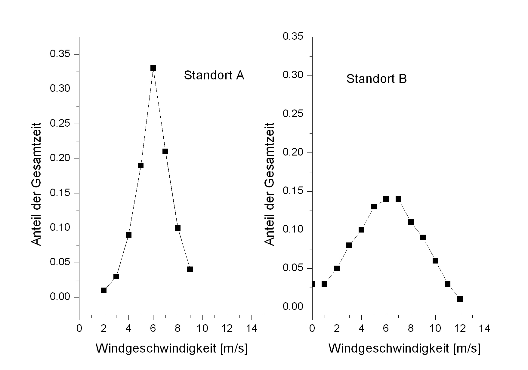 Eine konkrete Messung der Häufigkeitsverteilung für zwei Standorte