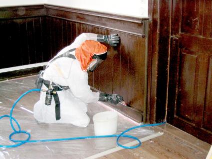 Abbeizmittel mit Dichlormethan dürfen nicht ohne Vollschutzanzug eingesetzt werden. Bild: obs/Berufsgenossenschaft der Bauwirtschaft