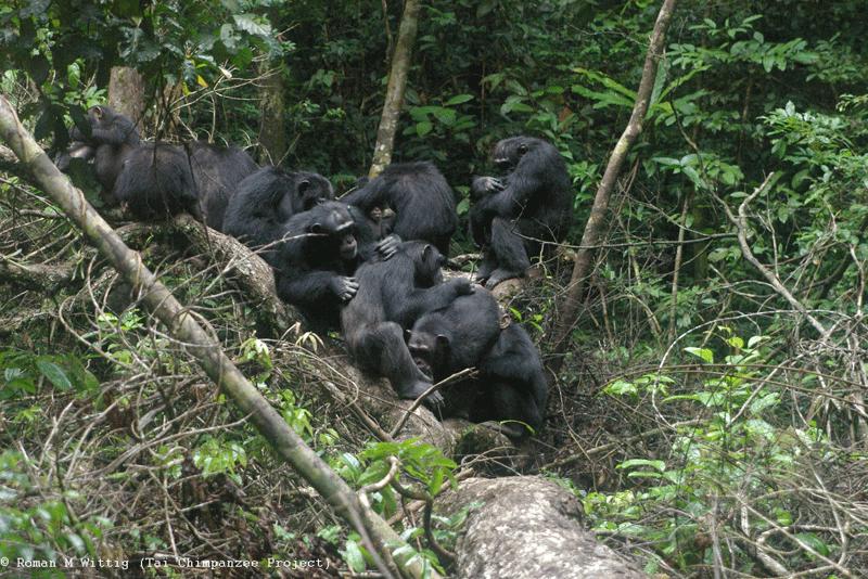 Schimpansen sind mit einigen Gruppenmitgliedern befreundet, mit anderen nicht. In jedem Fall behalte Quelle: Roman Wittig (idw)