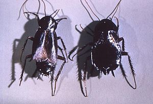 Männchen und Weibchen der Gemeinen Küchenschabe (Blatta orientalis). Bild: de.wikipedia.org