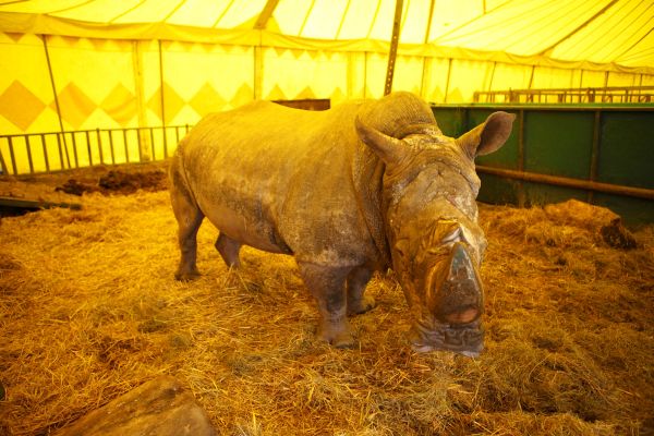 Nashorn Hulk im Circus Voyage. Bild: VIER PFOTEN, Fred Dott