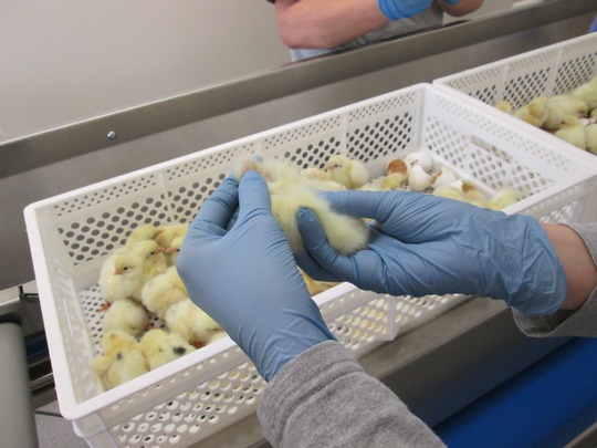 In einer Brüterei werden die männlichen Küken direkt nach dem Schlupf aussortiert, 2015, Österreich. Bild: (c) VIER PFOTEN