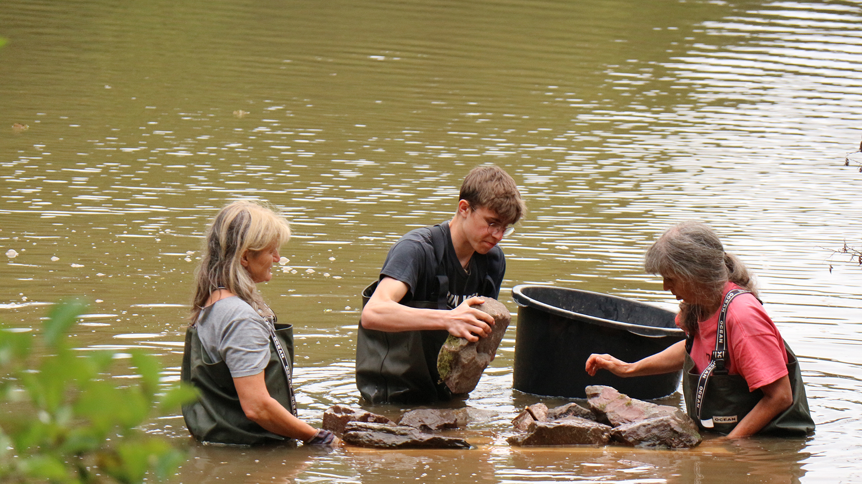 Freiwillige beim Anlegen von Flachwasserbereichen Bild: Bergwaldprojekt e.V. Fotograf: Thomas Doczkal