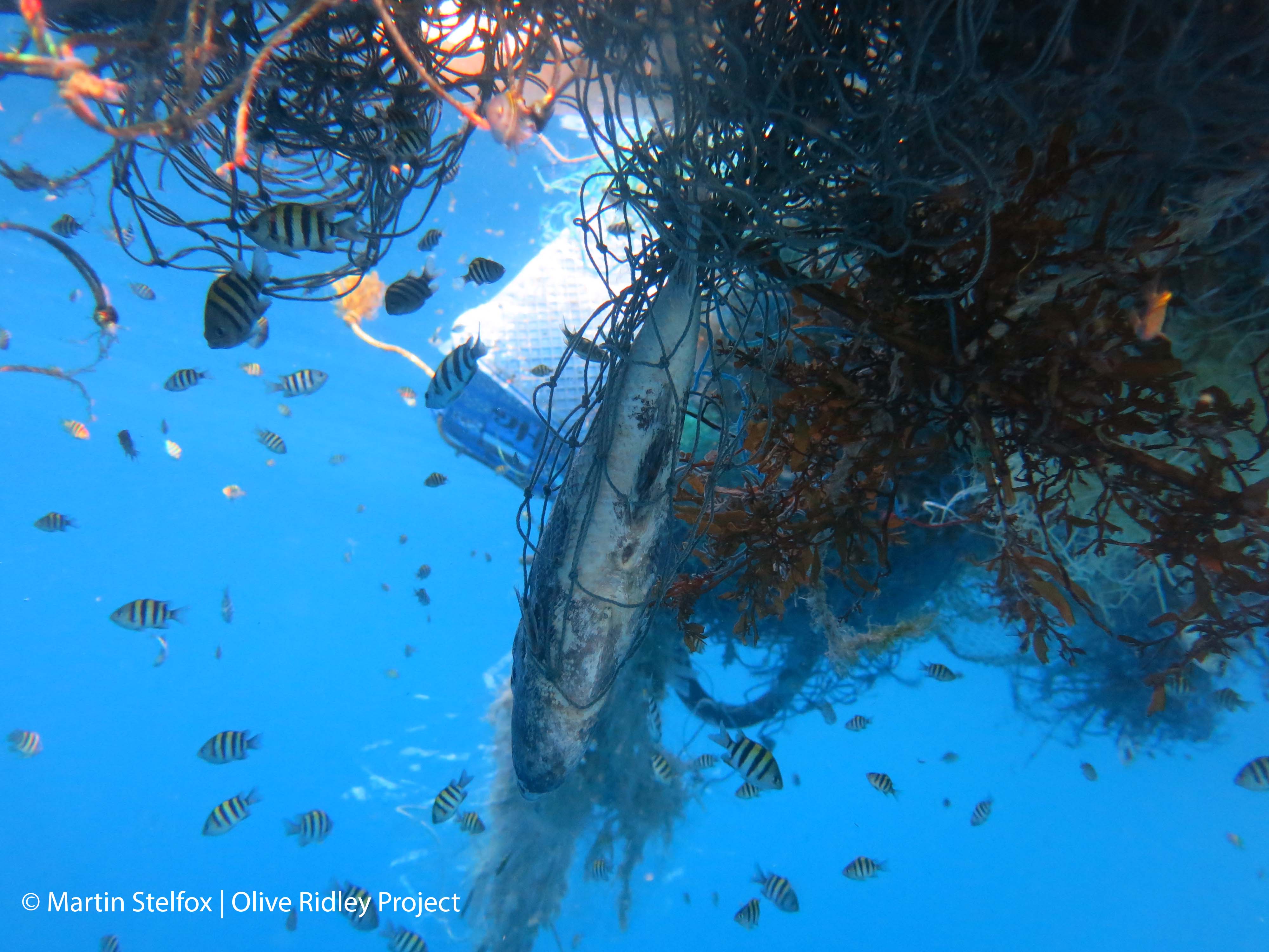 Fisch in einem Geisternetz (Malediven, 2014)
