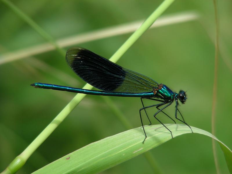 Die Gebänderte Prachtlibelle lebt an langsam fließenden Bächen und kleineren Flüssen. Die Bestände sind in den letzten Jahren vielerorts insbesondere durch Verschmutzung und Gewässerverbau zurückgegangen. Foto: Thomas Stalling