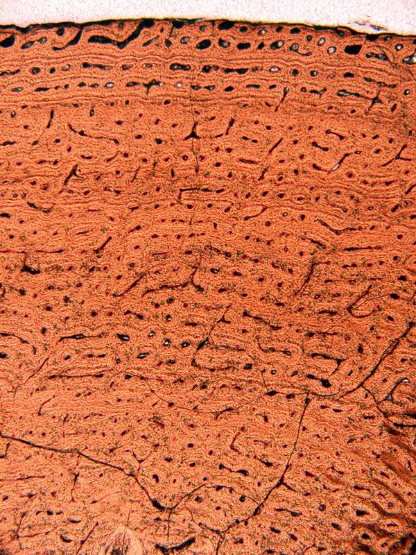 Knochenstruktur von Europasaurus im mikroskopischen Bild. Die Wachstumsmarken sind gut zu erkennen. Sie ähneln den Jahresringen von Bäumen. Foto: Dr. Martin Sander, Universität Bonn