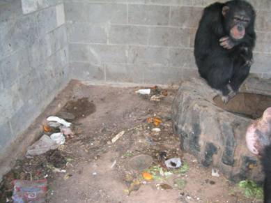 Vereinsamt: ZDF-Schimpanse im Amarillo Wildlife Refuge. Bild: PETA