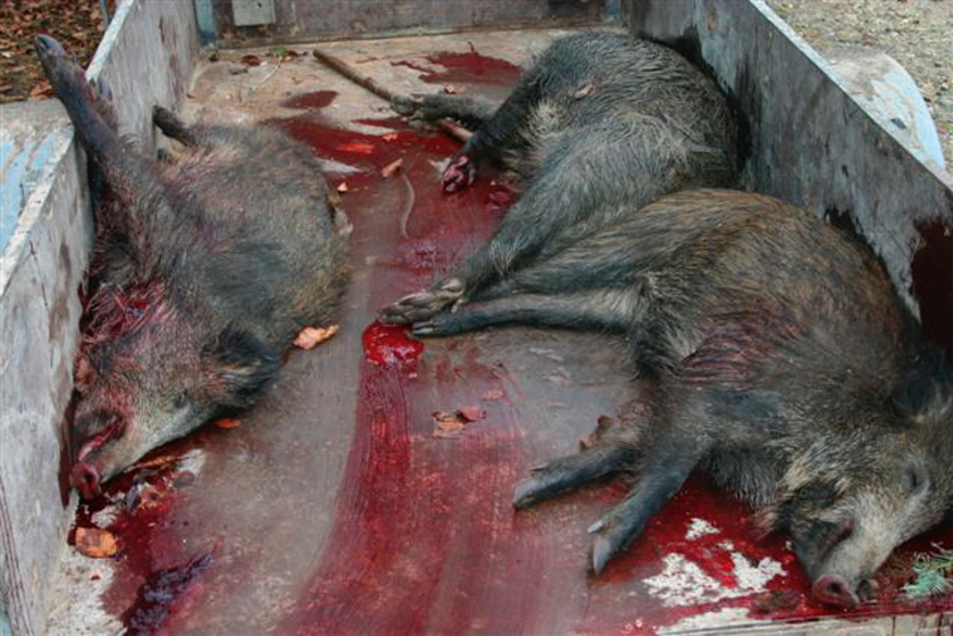 Tote abgeschlachtete Wildschweine