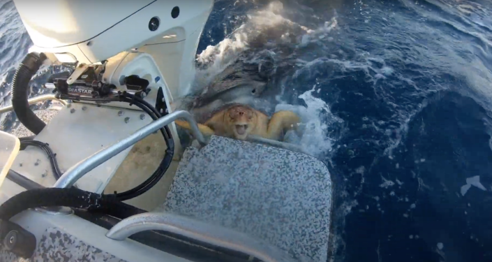 Krasse Naturszenen: Angler entdecken Schildkröte im Hai-Maul