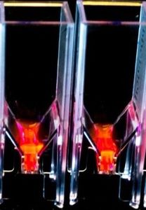 Fluoreszierende Mikroalgen werden im Labor untersucht.