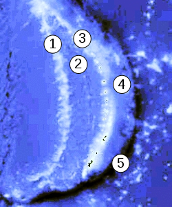 1) West-Marianen-Rücken2) Marianenbecken3) Marianen-Inseln4) Marianen Forearc-Becken5) Marianengraben