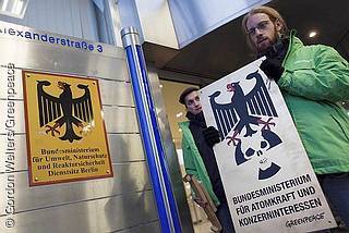 Greenpeace-Aktion gegen die Wiederaufnahme der Gorleben-Erkundung am Bundesministerium für Umwelt / Bild: greenpeace.de