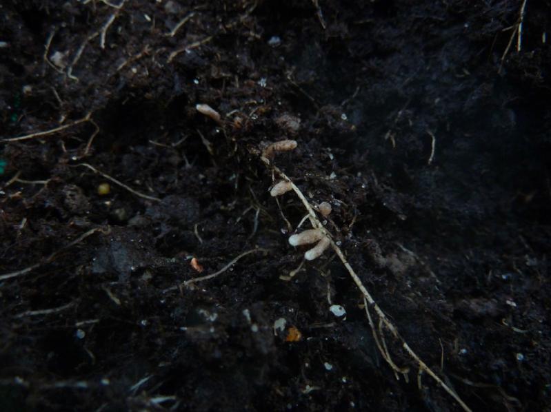 Die Rhizobien (Bakterien) lagern sich in den gut erkennbaren „Wurzelknöllchen“ an. Quelle: Dietrich Ober (idw)