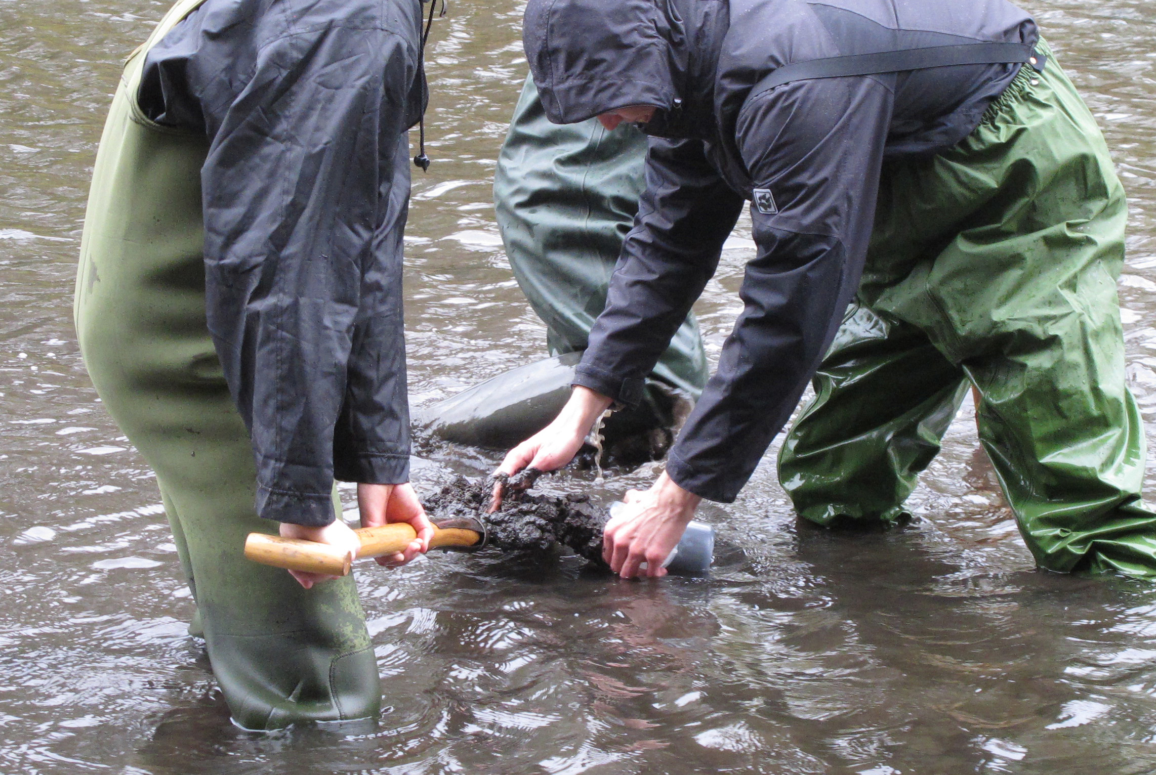Wissenschaftler bei der Probenahme der Sedimentproben Quelle: Foto: Prof. Dr. Peter Poschlod – Zur ausschließlichen Verwendung im Rahmen der Berichterstattung zu dieser Pressemitteilung. (idw)