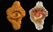 Von außen sehen die Fossilien wie unregelmäßig geformte Plätzchen aus, mit gespaltenen Enden und einem Klumpen als Zentrum. Unter einem hochauflösenden Röntgentomographen zeigen sie eine lagenartige Form mit einer deutlichen radiären Struktur und einem Faltenmuster im Zentrum. alle Fotos: El Albani