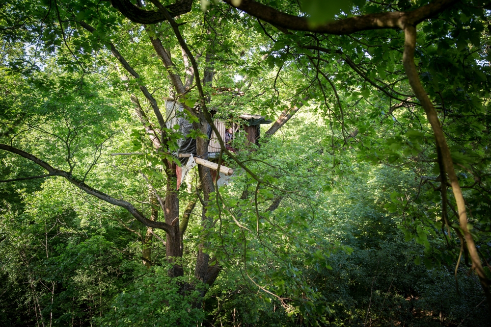 Ein "besetzter" Baum um den 12.000 Jahre alten Wald vor der Zersörung von Konzernen zu sichern.