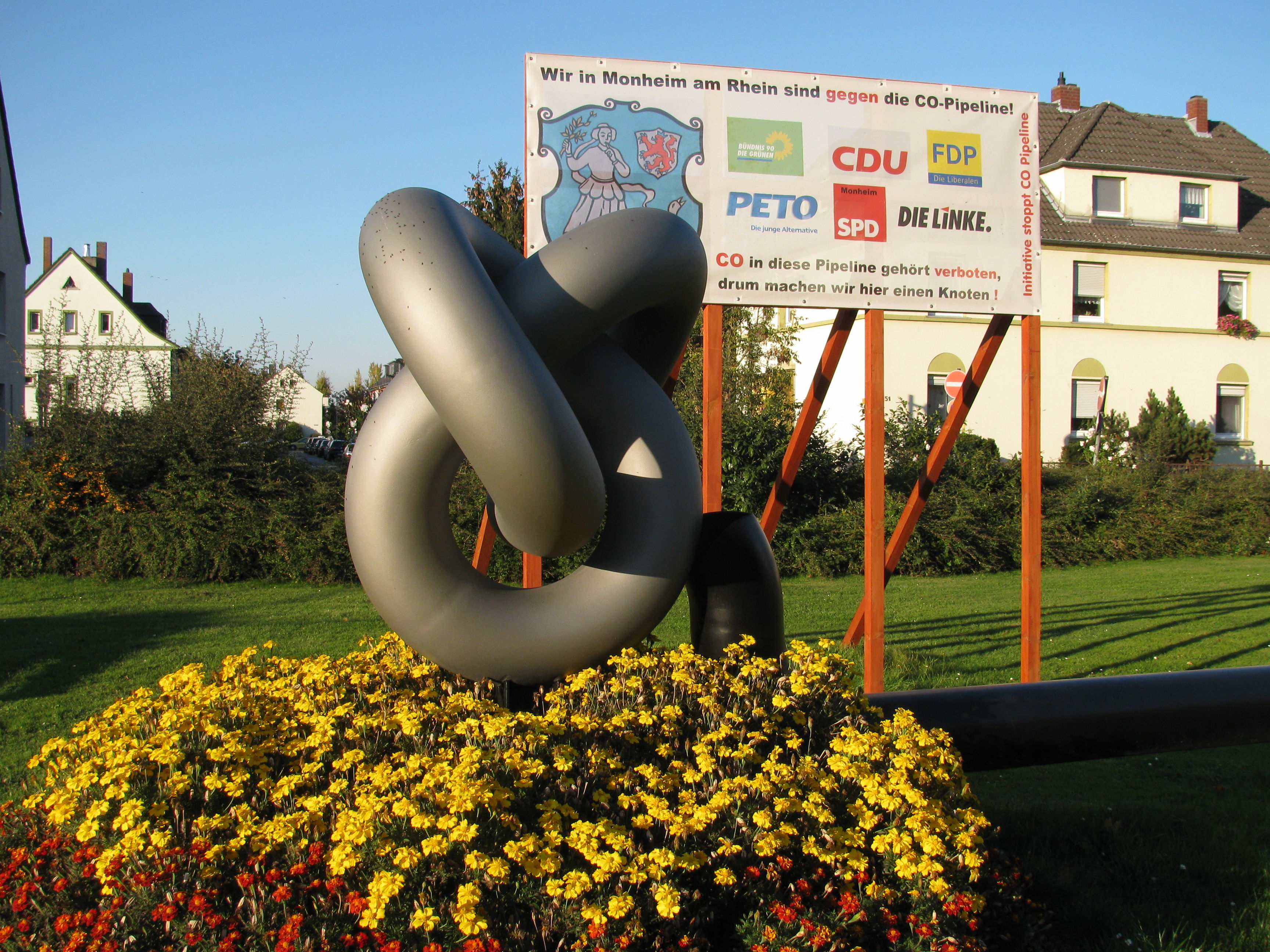 Protest-Mahnmal gegen die CO-Pipeline von Bayer