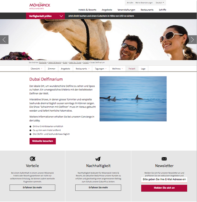 Mövenpick Hotelkette nimmt Dubai-Delfinarium nach WDSF-Hinweisen vom Netz