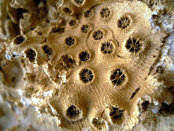 Kunstvolle Wiege der Evolution: Korallenriffe (im Bild eine fossile Riffkoralle aus dem Pleistozän von Ägypten) wurden bisher als Anziehungspunkt für eine Vielzahl von Tiergattungen aus anderen Ökosystemen angesehen - tatsächlich entstehen diese aber vor allem dort und siedeln dann um. Foto: Wolfgang Kießling