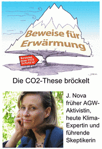 Die Aussage der Graphik oben lautet etwa: Es gibt einen weithin sichtbaren Berg von Beweisen für die Erd-Erwärmung der 1990´er Jahre, aber die These, dass das CO2 daran schuld ist, ist dünn wie ein Fliegenbein und sie bröckelt schon bedenklich - wenn nur die Skeptiker einheitlich Druck machen.