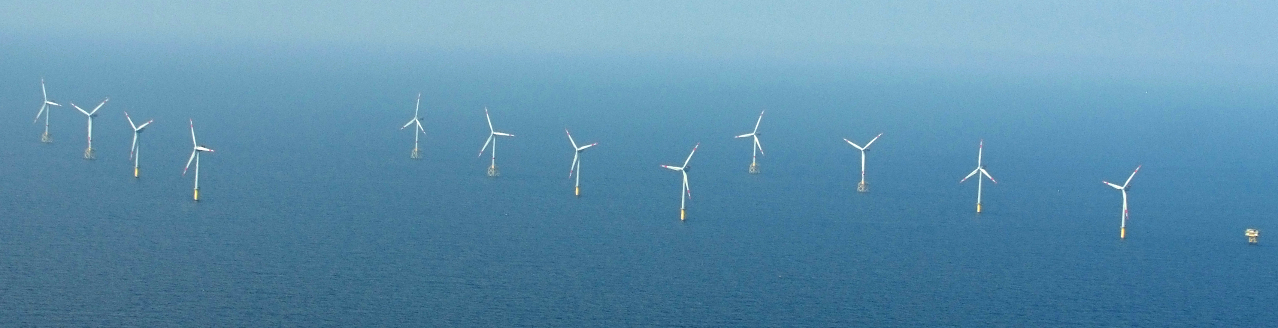 Windkraftanlagen des Offshore-Windparks alpha ventus in der Deutschen Bucht