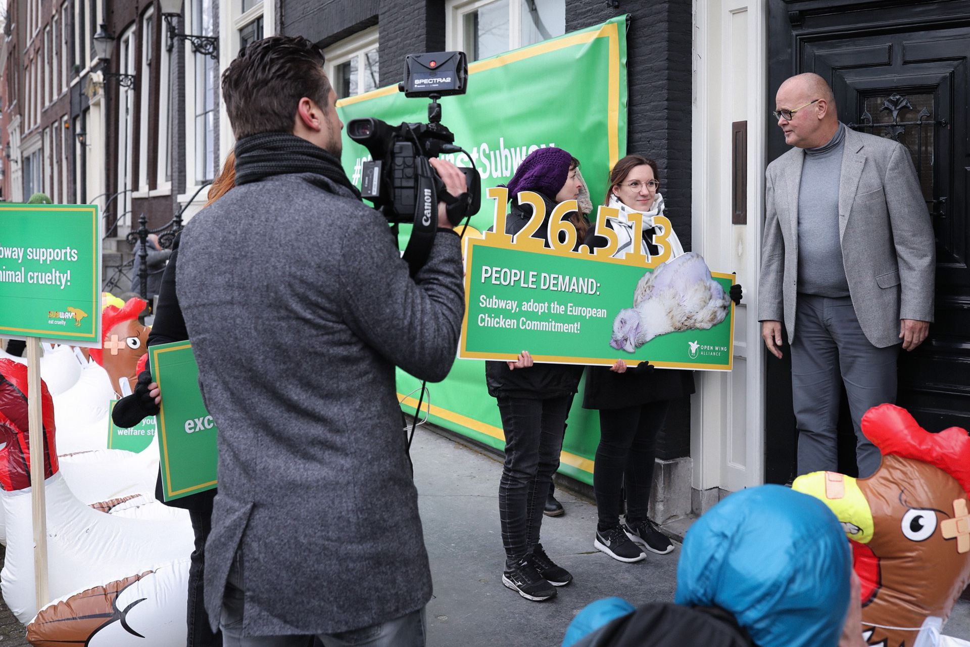 Zurück zu Hühner-Protest gegen Subway in Amsterdam trotzt dem Sturm