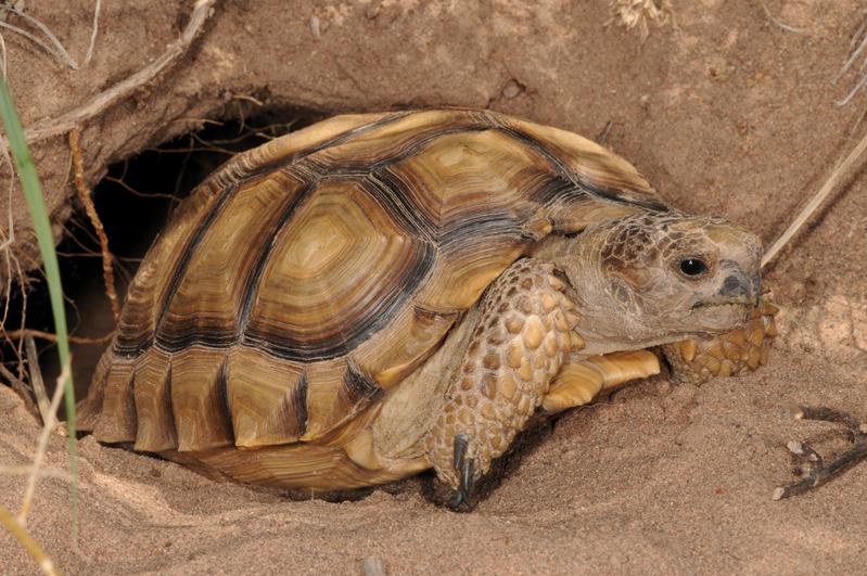 Argentinische Landschildkröte vor ihrer Unterkunft Quelle: © Peter Praschag (idw)
