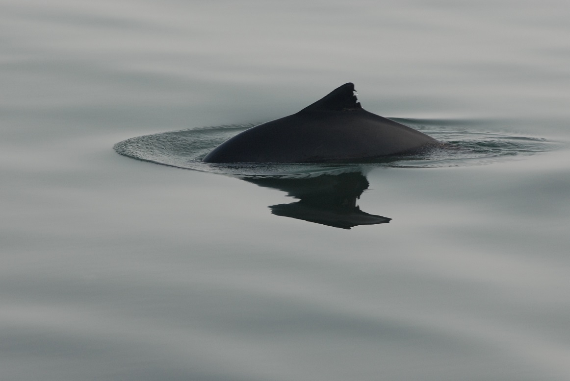 Typisch für den Schweinswal ist die deutlich erkennbare dreieckige Rückenflosse