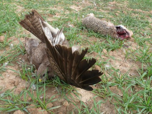 Sterbender Bussard neben Carbofurankoeder. Bild: Komitee gegen den Vogelmord eV.