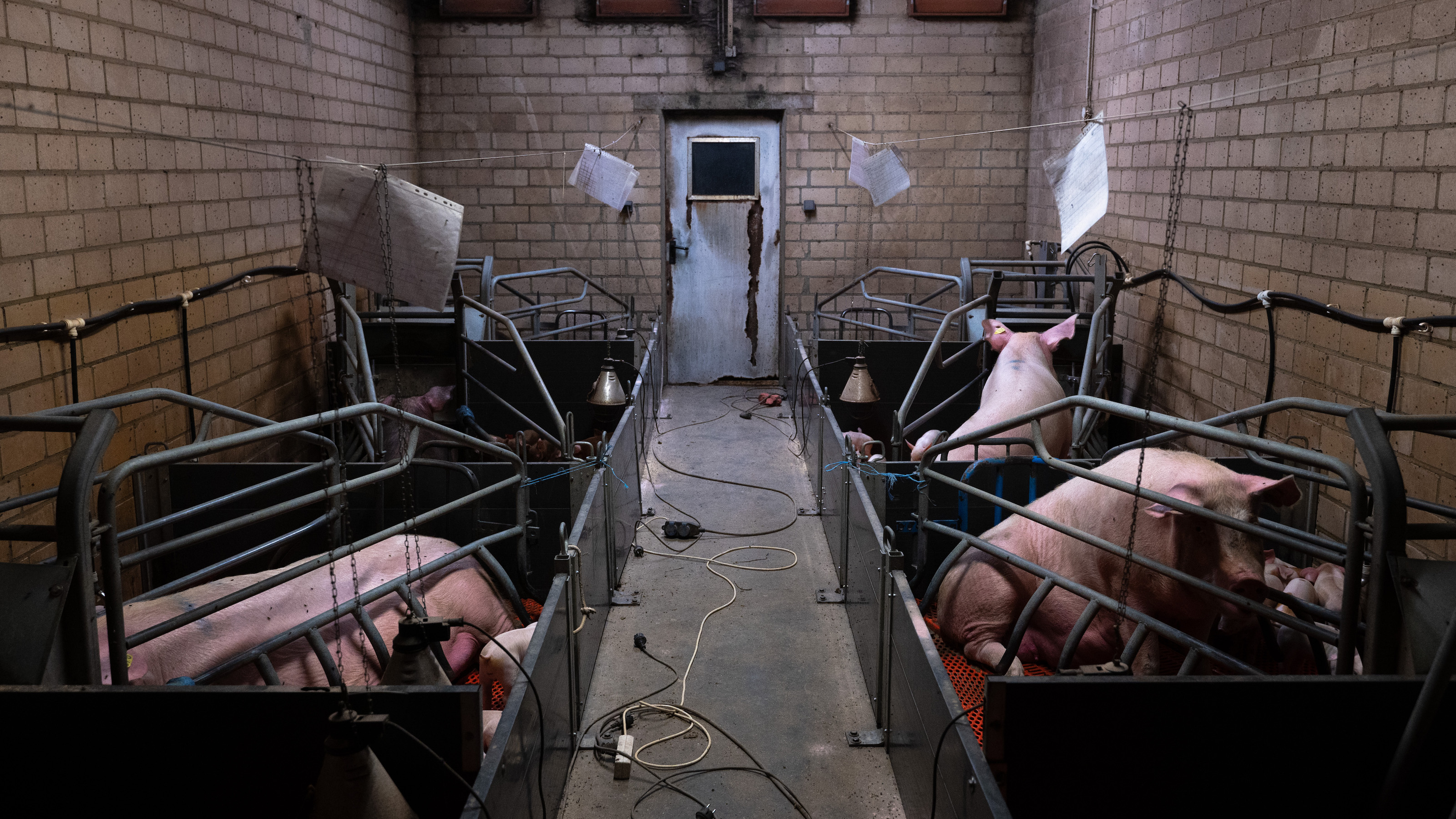 Sauen wochenlang in körpergroßen Abferkelkäfigen fixiert. Bild: Animal Rights Watch e.V. Fotograf: Animal Rights Watch e.V.