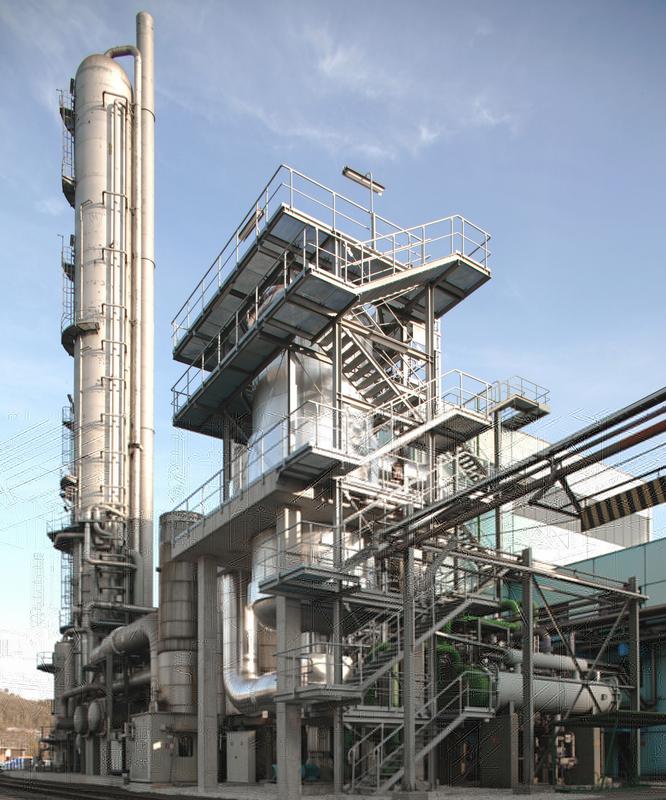 Das Bild zeigt eine großtechnisch-chemische Anlage mit EnviNOx®-Verfahren der Firma Agrolinz Melamine International in Linz, Österreich (Foto: Uhde GmbH)