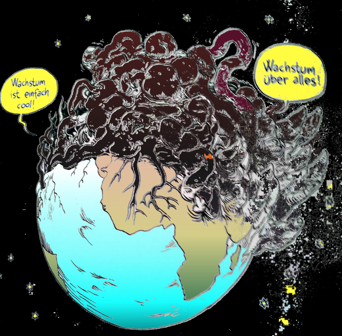 Ökonomen & Wachstumswahn (Symbolbild): In einer Gesellschaft mit Zinssystem muß die Wirtschaft innerhalb von 100 Jahren in die Unendlichkeit Wachsen um die Zinsen bedienen zu können.