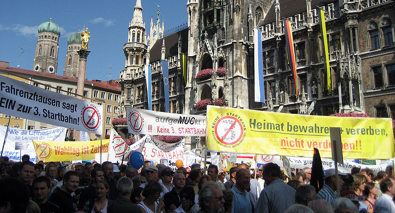 Großdemonstration gegen den Bau der 3. Start und Landebahn am Flughafen München im Jahr 2008. Bild: Alexis Dworsky / wikipedia.org