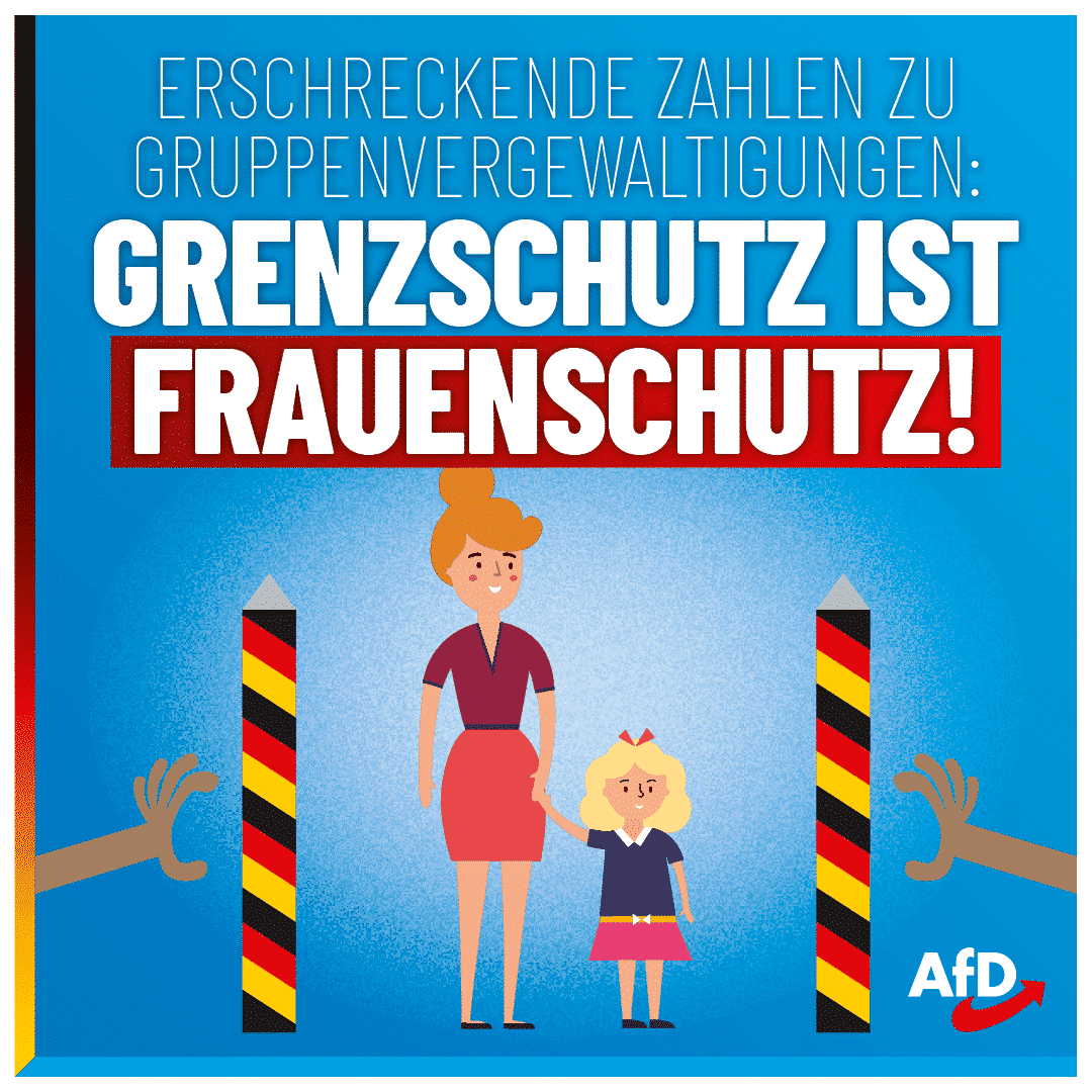 Zurück zu AfD: Erschreckende Zahlen zu Gruppenvergewaltigungen: Grenzschutz ist Frauenschutz!