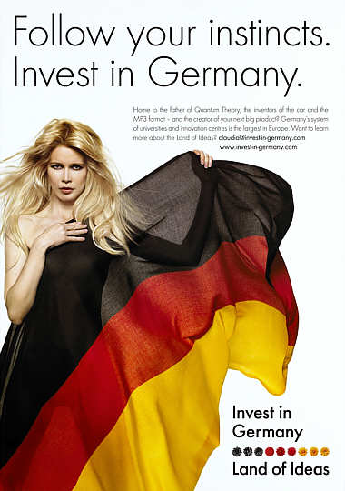 Mit dem deutschen Model Claudia Schiffer warb die Standortinitiative "Deutschland – Land der Ideen" einmal im Ausland. Heute ist alles anders.