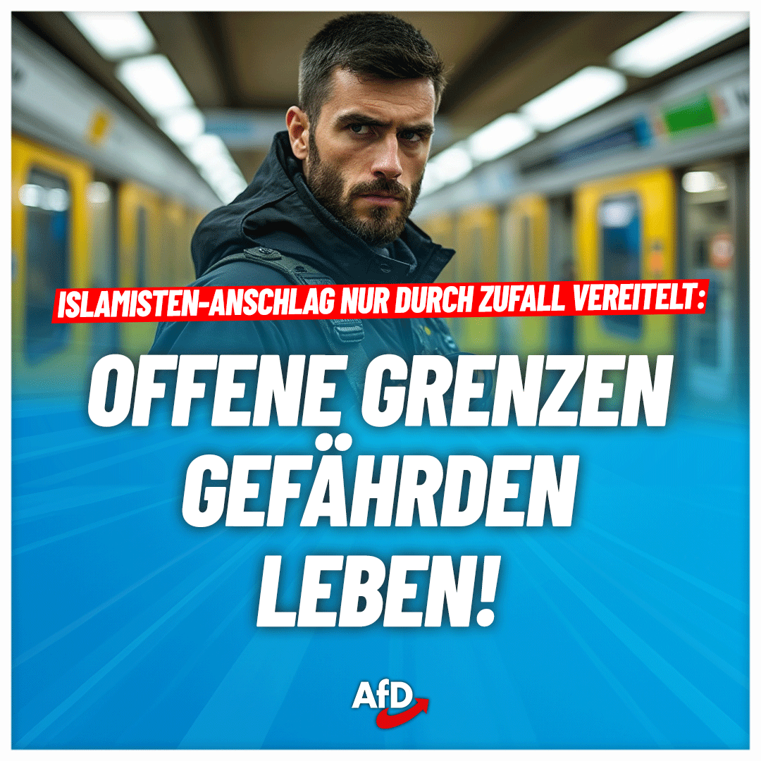 Zurück zu AfD: Sprengstoffanschlag in Berlin vereitelt: Offene Grenzen gefährden unser Leben!
