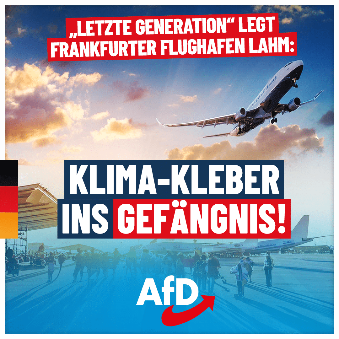 Zurück zu AfD: „Letzte Generation“ legt Frankfurter Flughafen lahm: Klima-Kleber ins Gefängnis!
