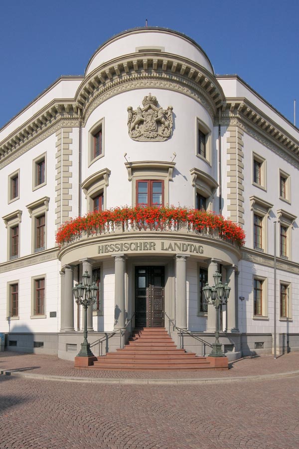 Ecke des Schlosses mit Haupteingang und Inschrift Hessischer Landtag