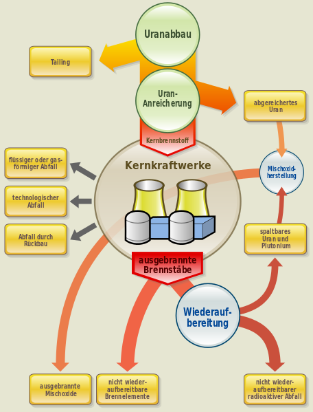 Entstehung der radioaktiven Abfälle der Nuklear-Industrie