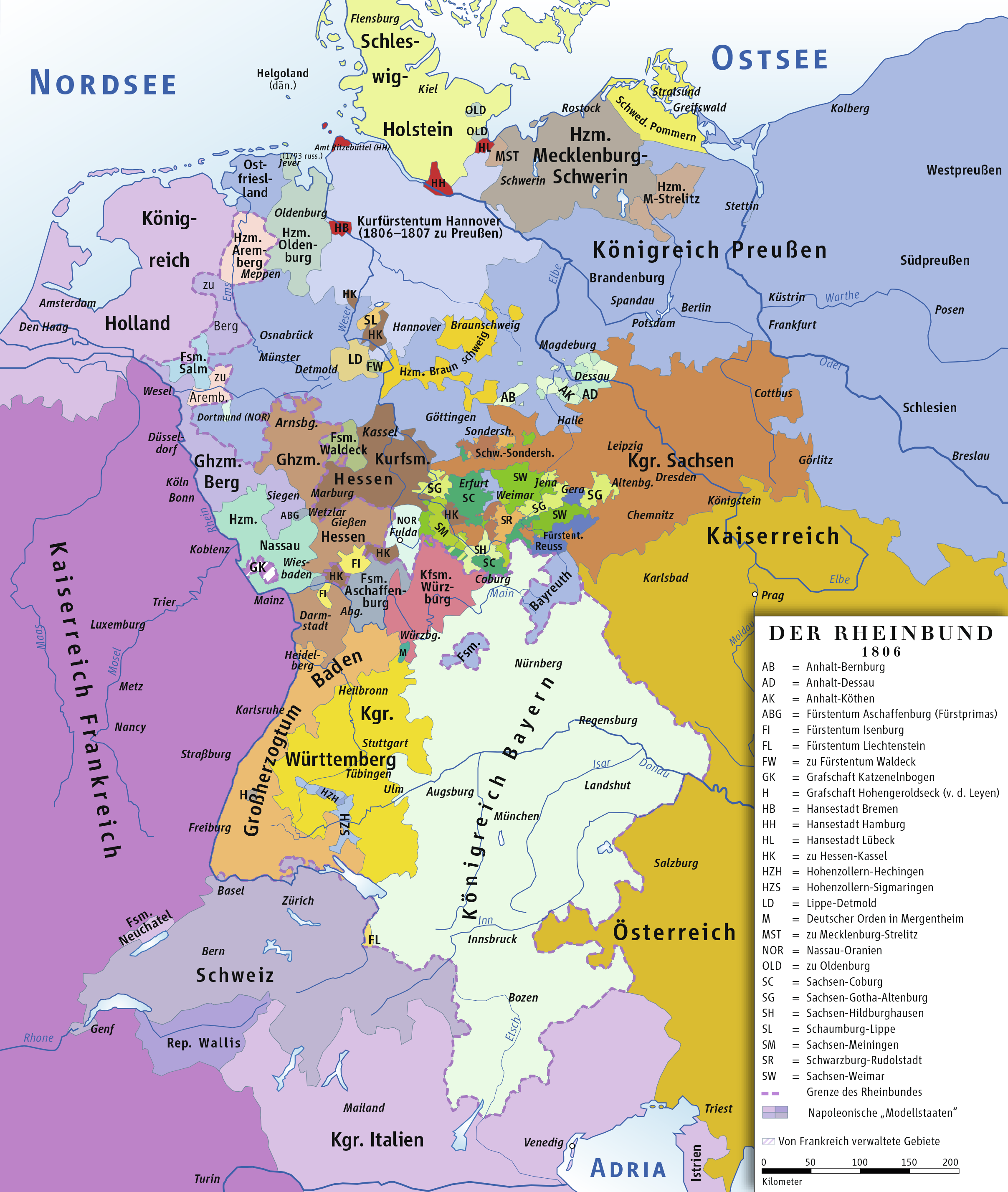 Königreich Bayern im Rheinbund 1806, mit Tirol im "Heilig römischen Reich deutscher Nation"