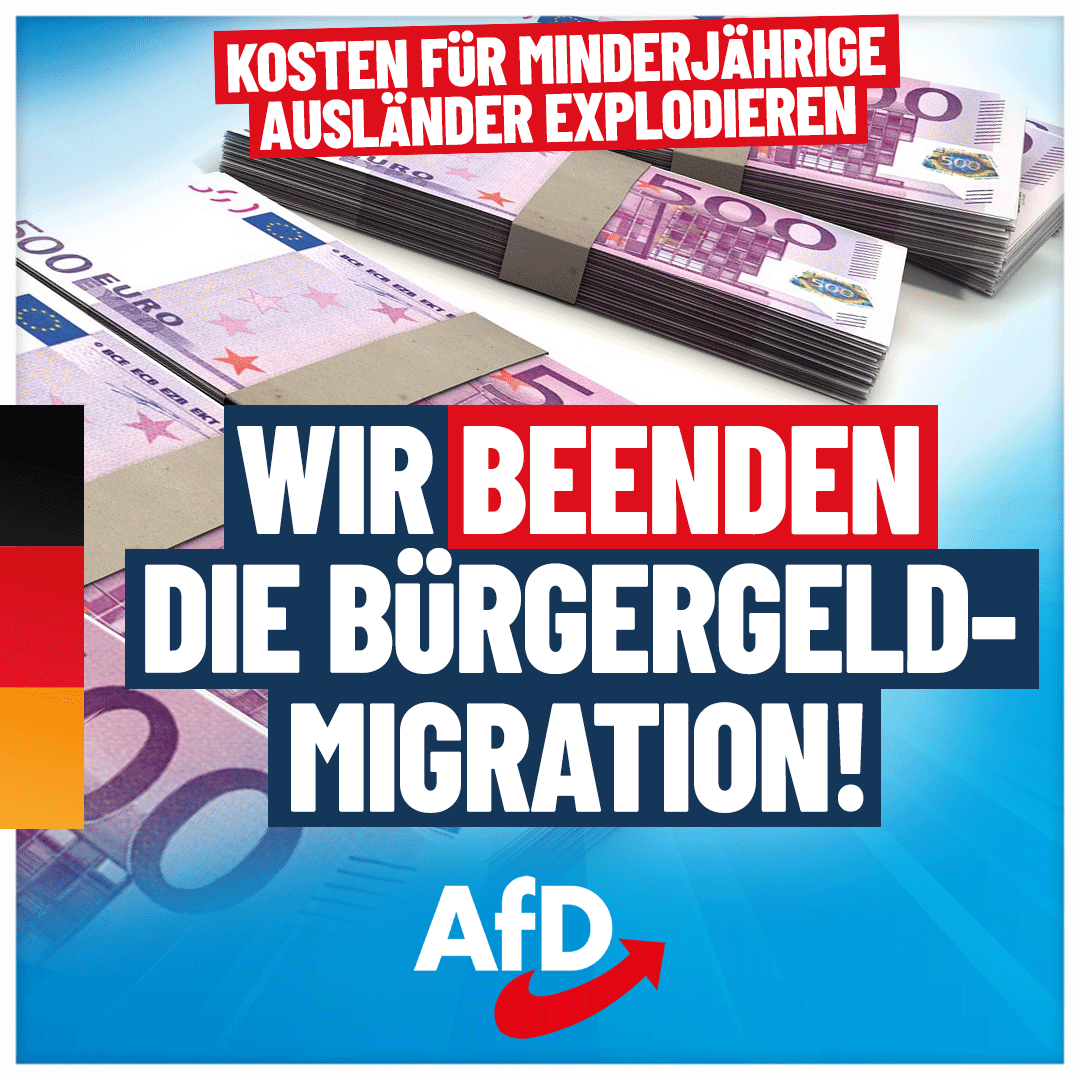 Zurück zu AfD: Auch Kosten für minderjährige Ausländer explodieren: Wir beenden die Bürgergeld-Migration!