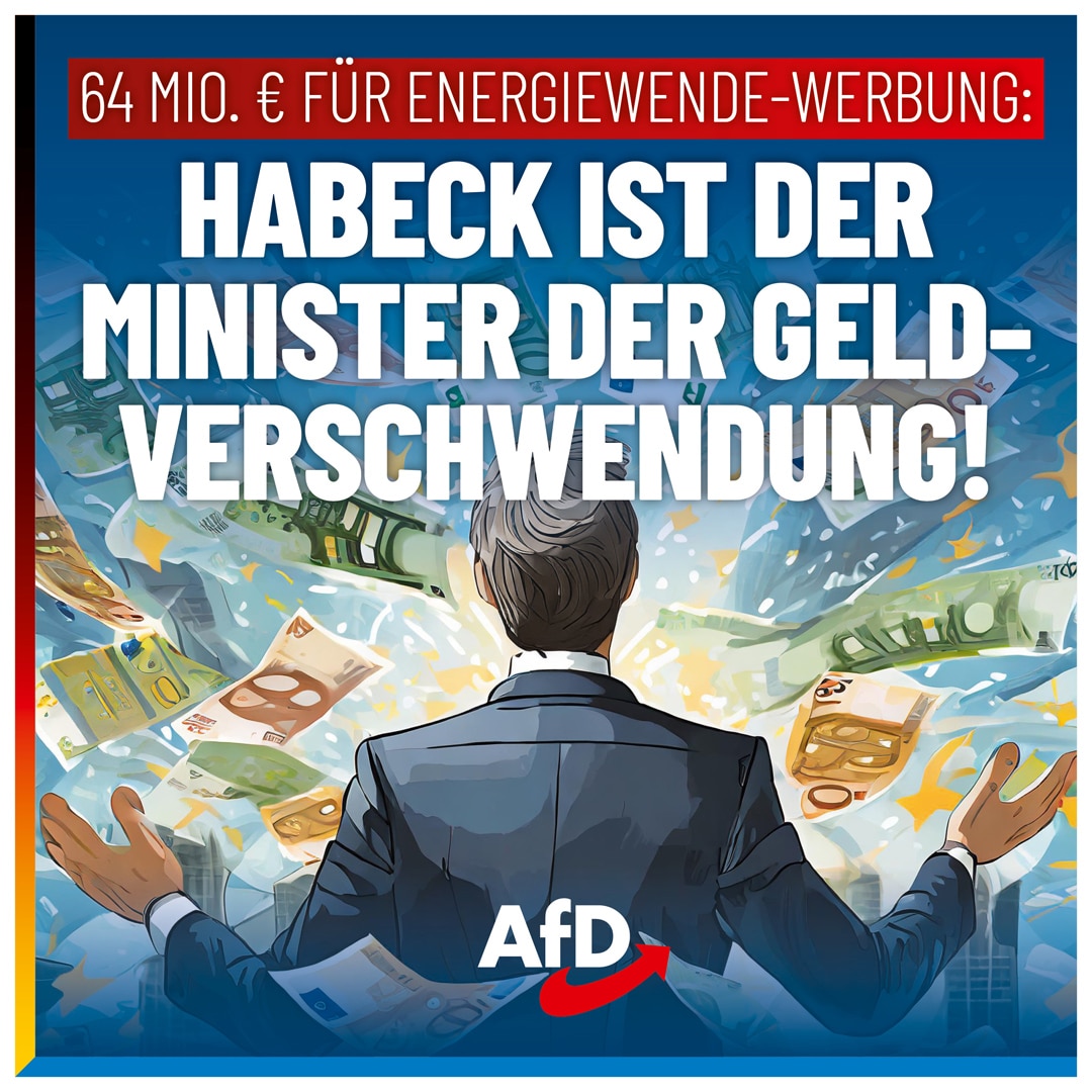 Zurück zu AfD: 64 Mio. € für „Energiewende“-Werbung: Habeck ist der Minister der Geldverschwendung!